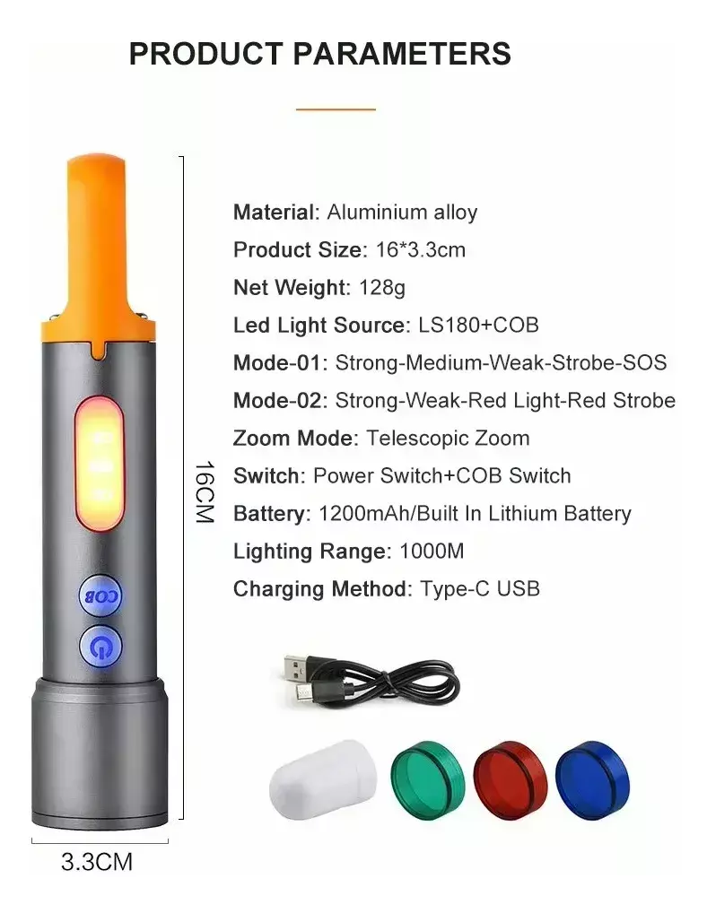 Linterna LED con filtro de colores ideal para camping: la herramienta ideal para iluminar tus actividades al aire libre con estilo y funcionalidad. Su luz potente y sus filtros intercambiables te permiten elegir diferentes colores para crear ambientes únicos o señalizar en situaciones de emergencia.
