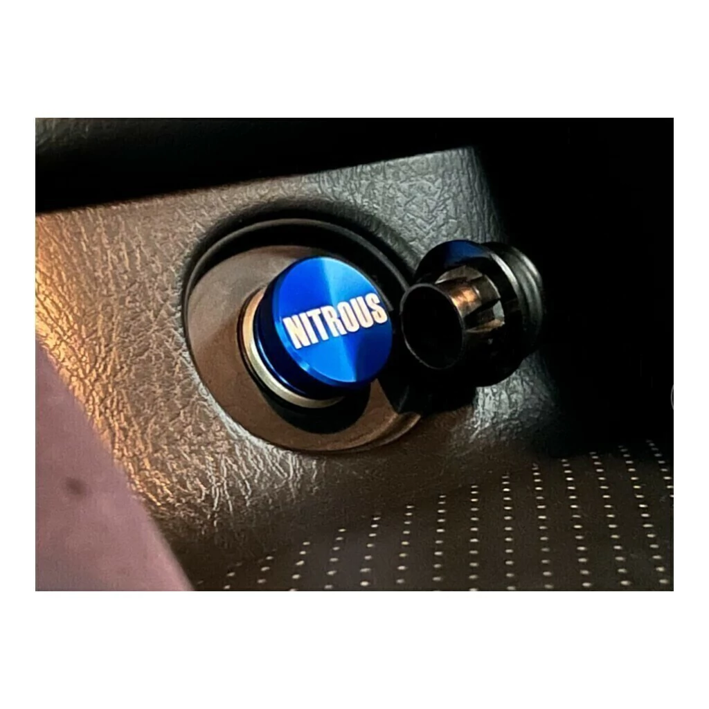 Divertida tapa para encendedor compatible con todos los vehiculos. En este caso presentamos "Nitrous" un boton para sentirlo cuando dejas al resto en el retrovisor.